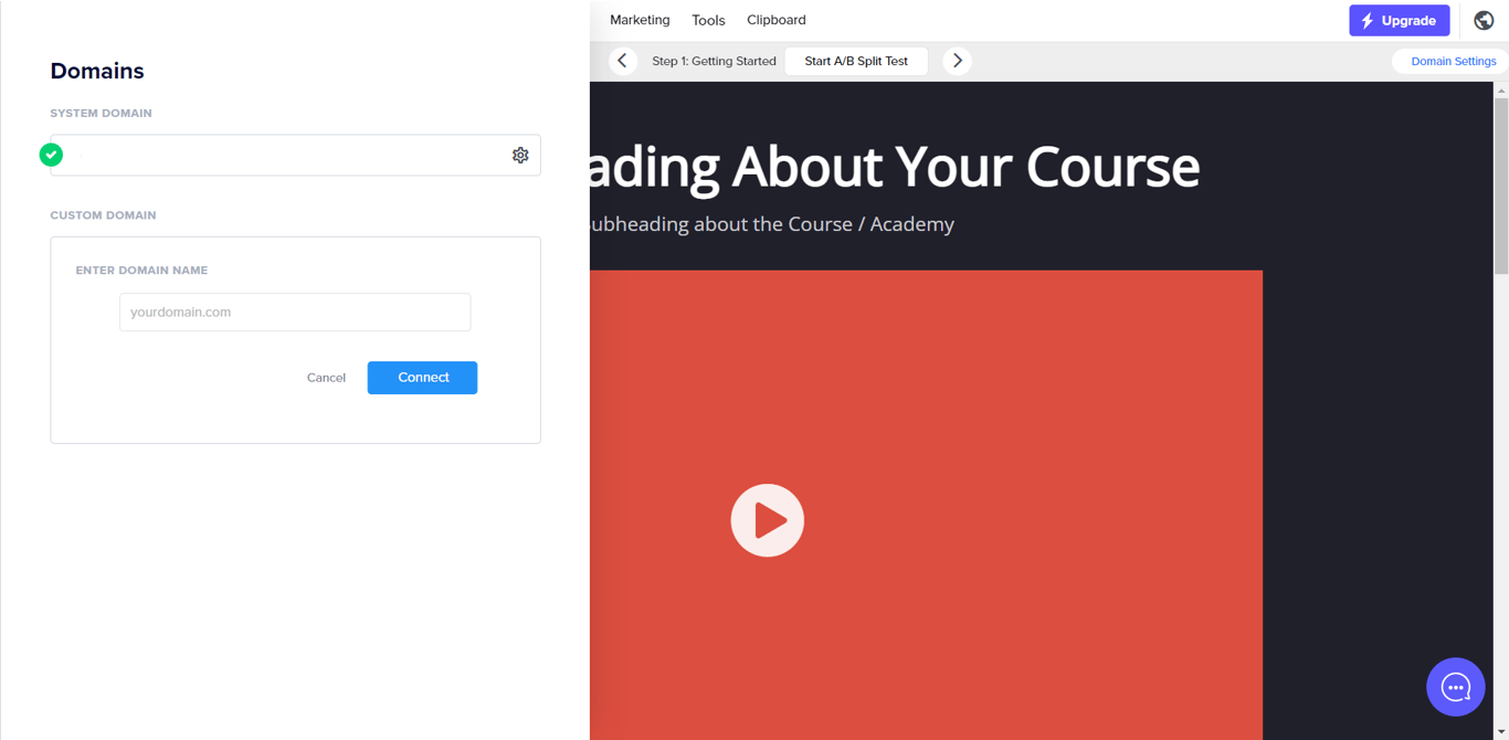 System domain: Here you can change the funnel domain - For example, a funnel domain will look like this: