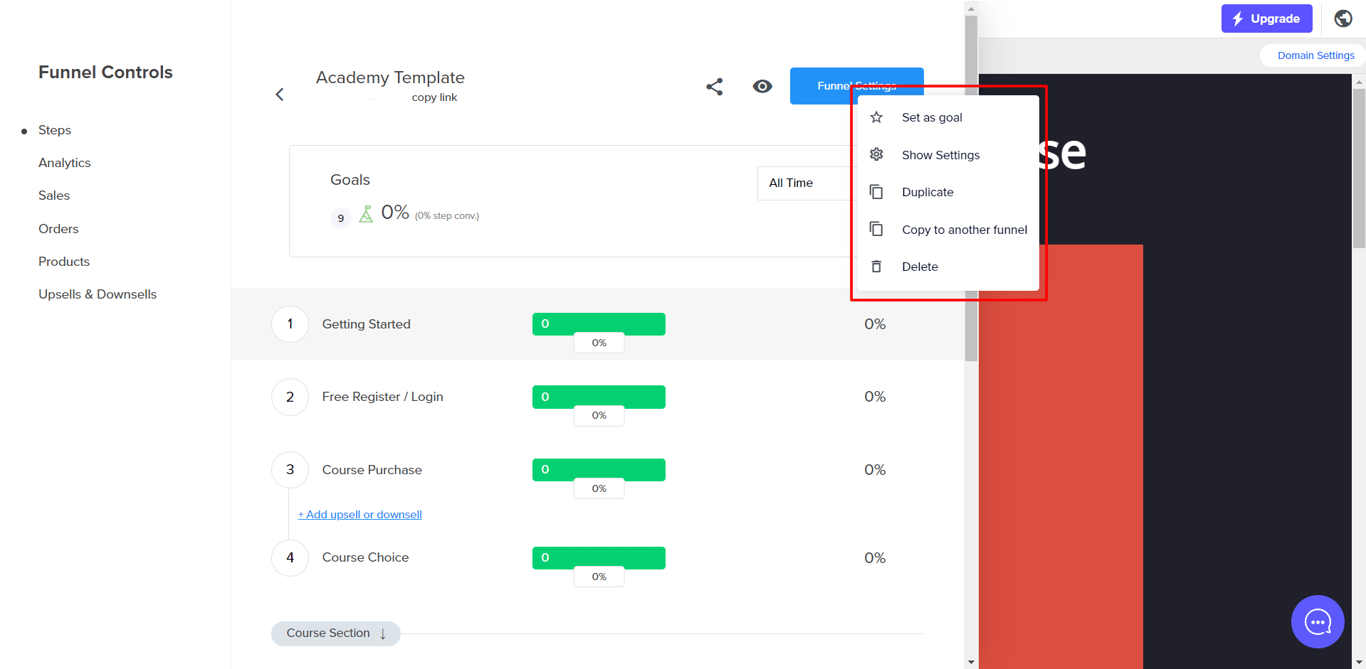 Created an amazing step that you want to use in another funnel? Awesome, select the copy to another funnel tab and it will ask you which funnel would you like to add it to.