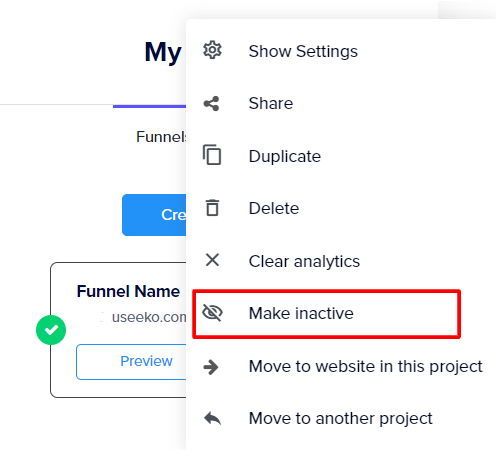 Once your funnel is inactive, the funnel within the funnel library tab will now display a red dot icon denoting that it is now inactive.To turn the funnel back on, repeat the same process and your funnel will now be live.