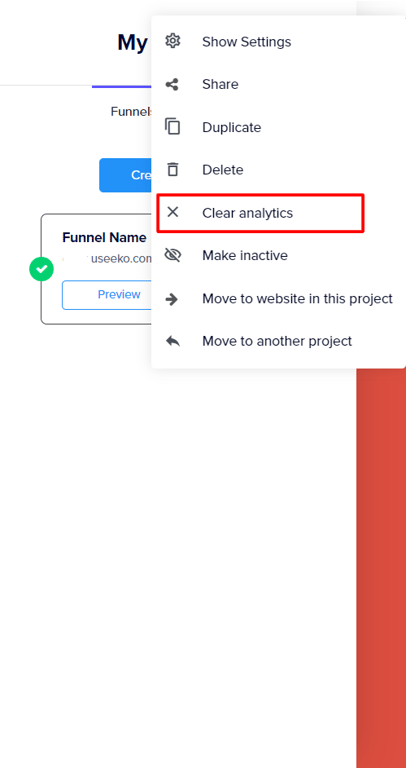 If you need to reset your funnel analytics. Simply select the funnel > click the 3 dots and the funnel settings tab will open > select clear analytics and that's it.