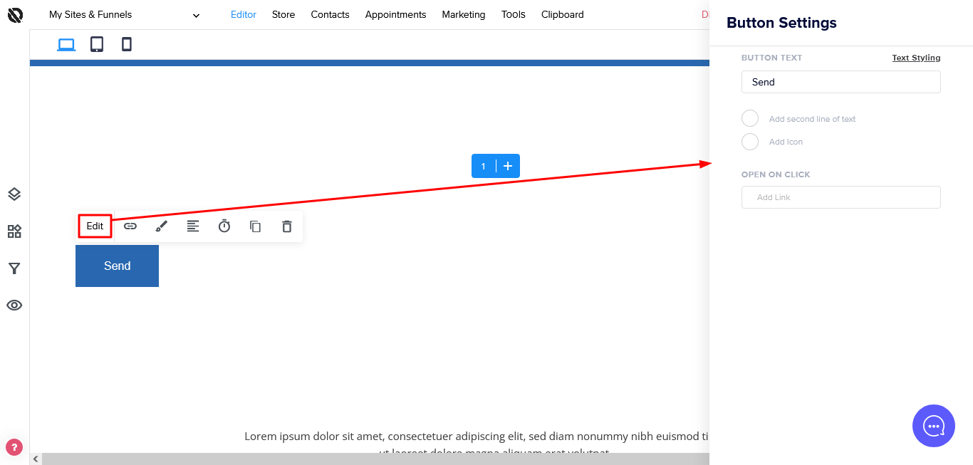 When you have placed your button in the desired location, you're able to edit and modify the button settings.