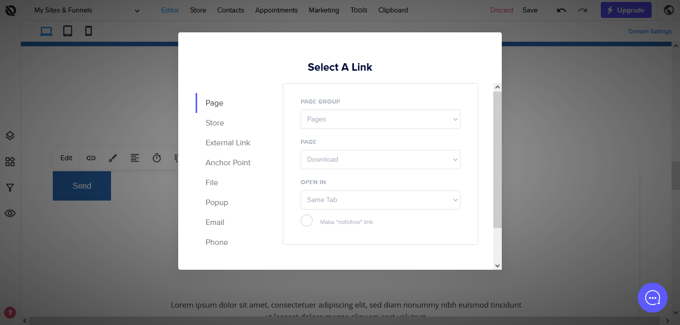 What action do you want to happen when a website visitor clicks your button. The link enables you to push the visitor to any page, link, and even any step of your funnel.