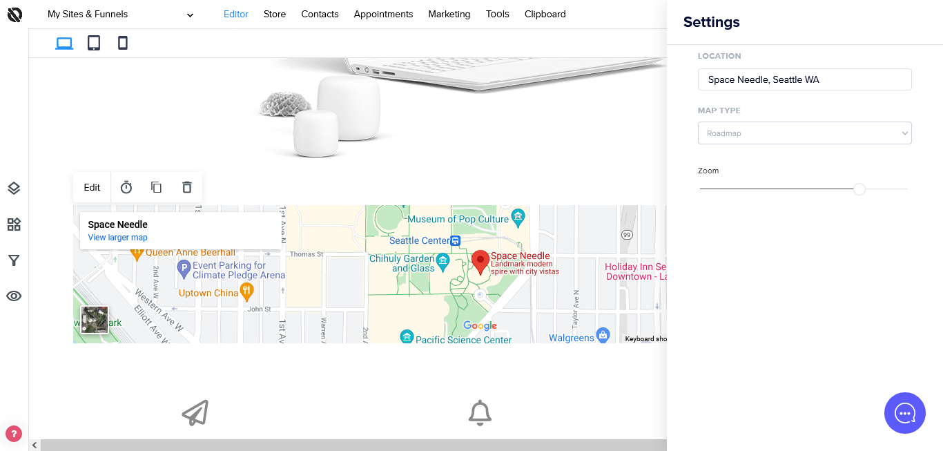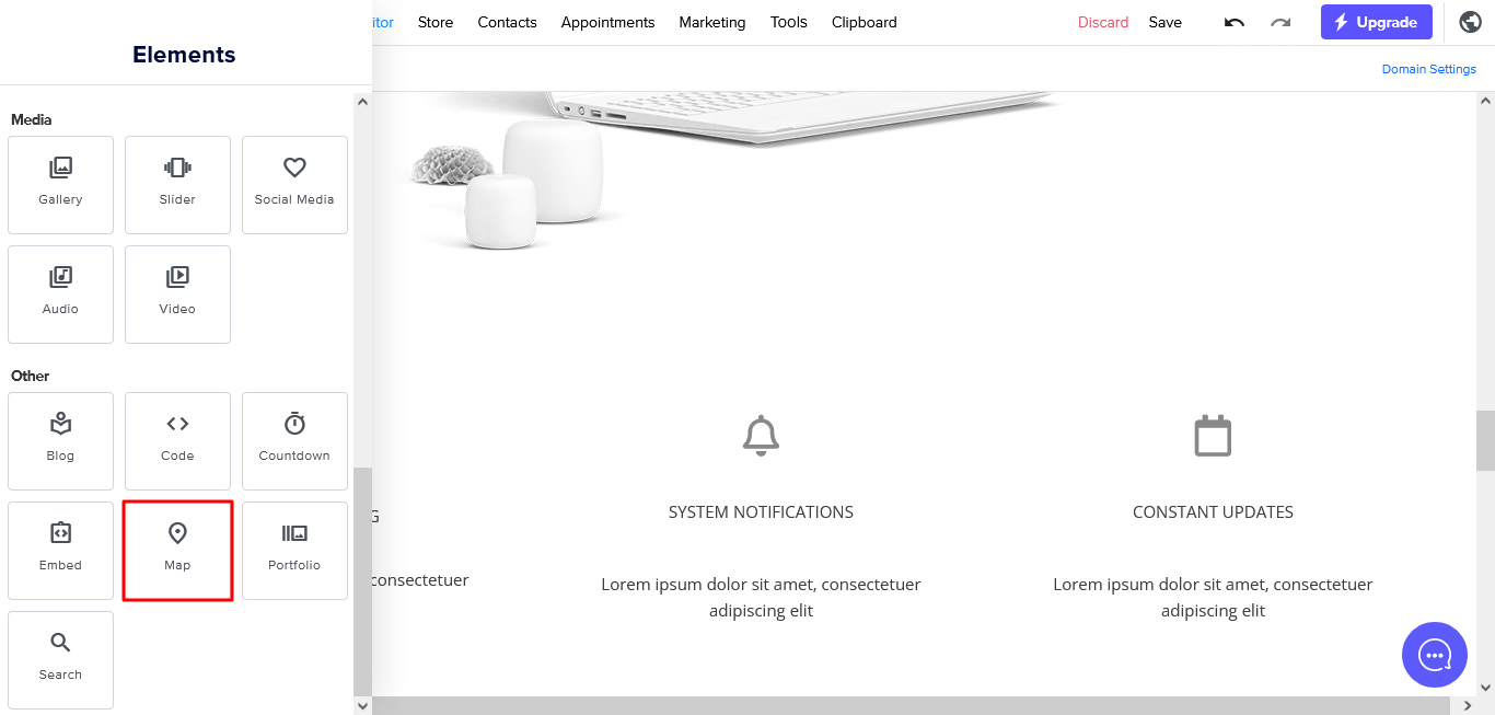 To add the Code widget go-to> Widgets > Other Widgets and select the map widget.