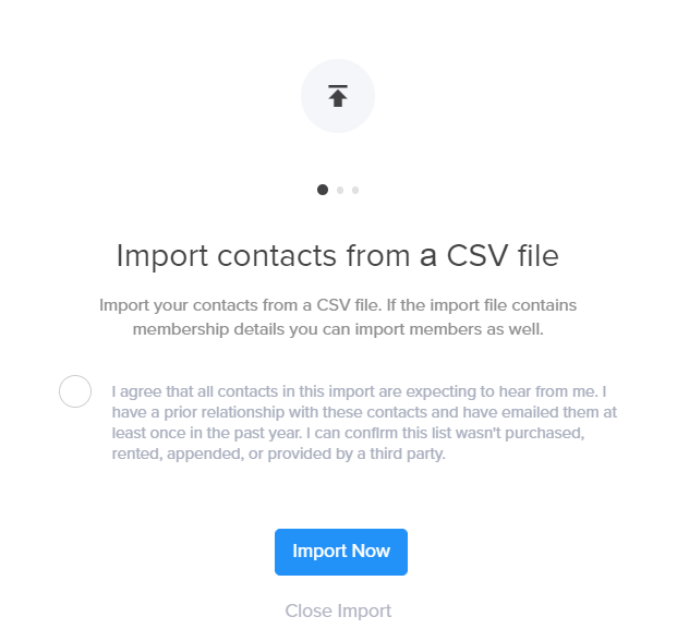 Now a new window will open within the import section. To import your contacts - select Import now and simply add your CSV file containing your client information and that's it. All your contacts will now be automatically added to your Contacts area.
