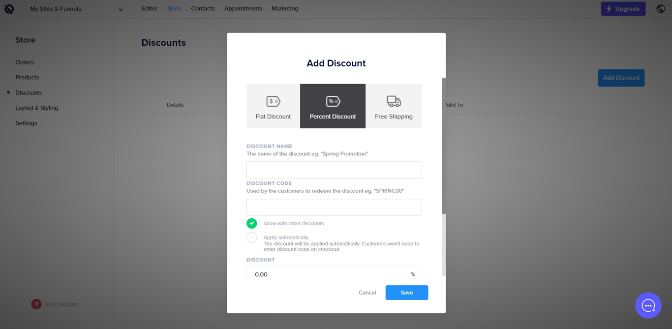 Simple go to the discount tab located in the store settings section and input your required discount information.