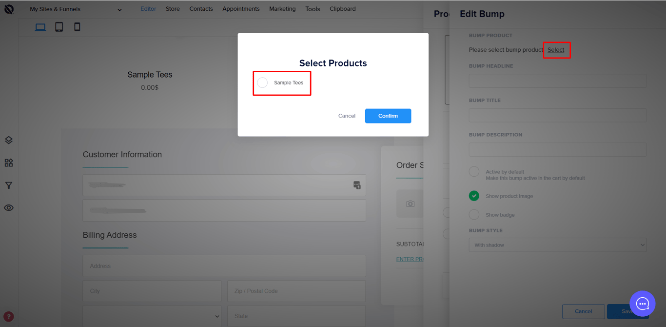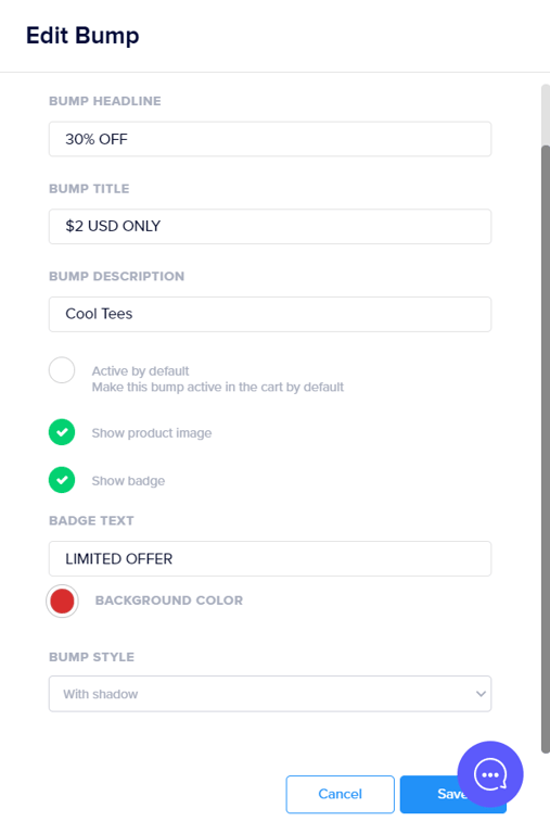 Now select add bump- then select product you want to add as a bump offer from your products menu