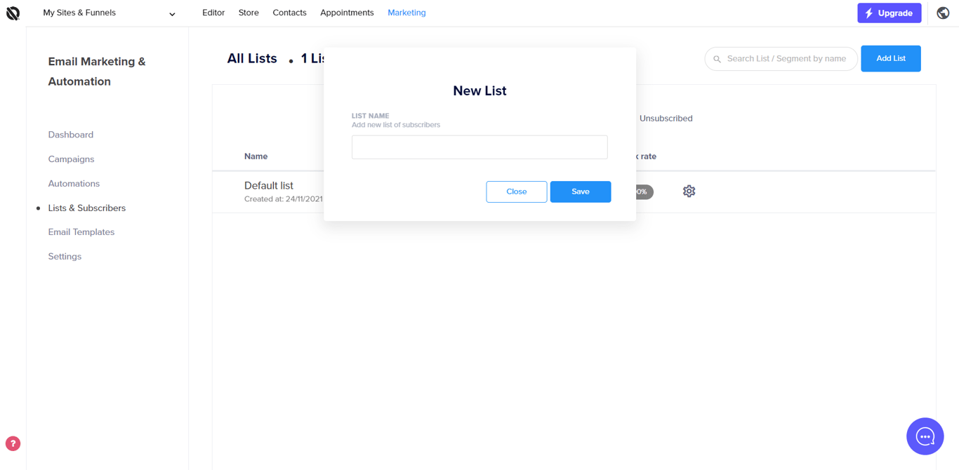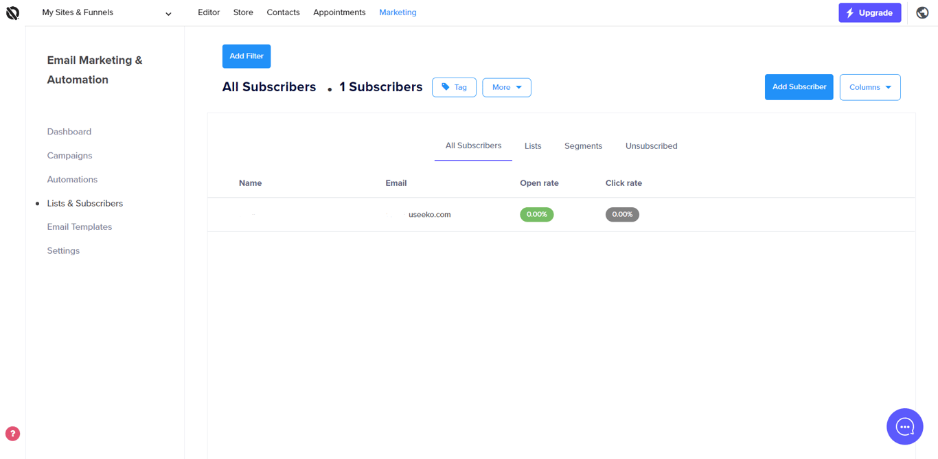 Within the lists and subscribers tab, you'll be able to: