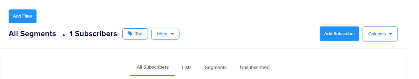 - Select the all subscribers tab > Use the filter to create a defined list that you want to create a segment with.